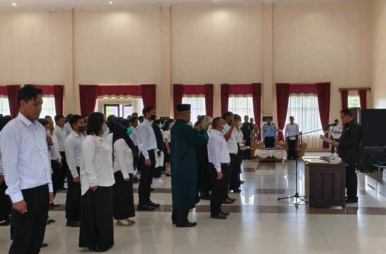 JEJAKKALTENG.COM, Kasongan – Sebanyak 483 Anggota Panitia Pemungutan Suara (PPS) se-Kabupaten Katingan dilantik dan dikukuhkan, Selasa (24/01/2023). Khusus untuk empat kecamatan, prosesi pengambilan sumpah dan janji di Gedung Salawah Kasongan, dipimpin langsung oleh Ketua Komisi Pemilihan Umum (KPU) Kabupaten Katingan, Subandy. Hadir kala itu, Bupati Katingan Sakariyas SE, unsur Forkopimda, Komisioner Bawaslu Provinsi Kalimantan Tengah dan Kabupaten Katingan serta undangan lainnya.