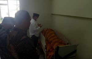 Bupati Kotim, H Halikinnor, saat mendoakan jenazah Almarhum di Rumah Sakit Murjani Sampit, pada Kamis siang (2/3/2023).