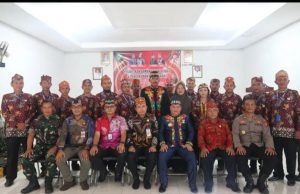 Bupati Kotim, H Halikinnor, bersama Sekda Kotim, Fajrurrahman, beserta jajarannya, saat foto bersama dengan para Damang yang ada di kotim, Kamis (2/3/2023).