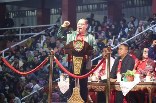 Bupati Kotim, H Halikinnor, yang juga selaku Ketua Umum Panitia Besar Porprov Kalteng XII, saat menyatakan telah sukses dan lancar dalam pelaksanaan Porprov Kalteng XII, Sabtu (5/8/2023).