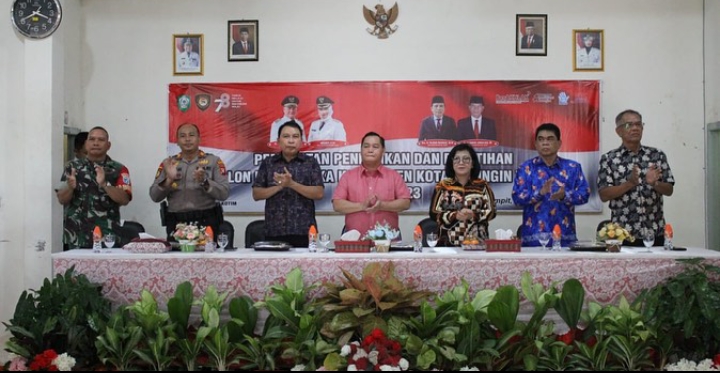 Bupati Kotim, H Halikinnor, didampingi Ketua DPRD Kotim, Dra Rinie, dan Sekda Kotim, Fajrurrahma, dalam acara pembukaan Pemusatan Pendidikan dan Pelatihan calon Anggota PASKIBRAKA Kabupaten Kotim,di Aula Balai Diklat Aparatur SDM, Minggu (06/8/2023).