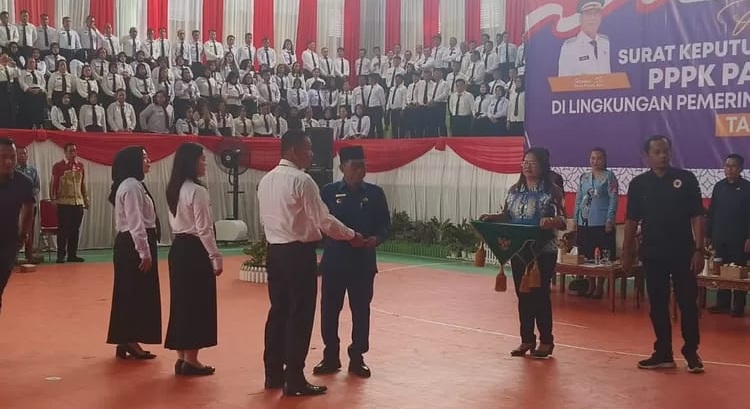 JEJAKKALTENG.COM, Puruk Cahu – Pemerintah Kabupaten Murung Raya (Mura) resmi menambah tenaga aparatur dengan diserahkannya Surat Keputusan (SK) Pengangkatan bagi 1.317 Pegawai Pemerintah dengan Perjanjian Kerja (PPPK) Paruh Waktu. Penyerahan SK yang dipimpin langsung oleh Bupati Murung Raya, Heriyus, ini berlangsung di Puruk Cahu dan turut disaksikan para kepala dinas serta pejabat di lingkungan Pemkab Mura.