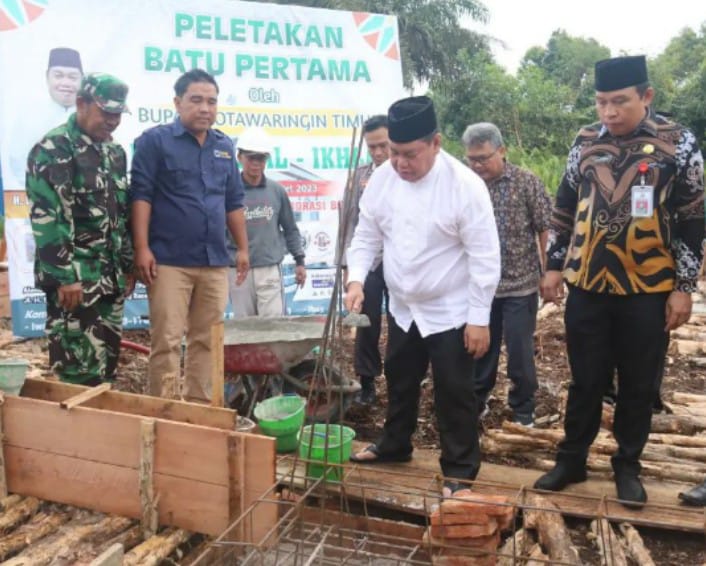 JEJAKKALTENG.COM,Sampit – Bupati Kotawaringin Timur (Kotim), H Halikinnor, melakukan kegiatan peletakan batu pertama tehadap pembangunan Musala Al Ikhlas, yang dilaksanakan di Jalan Cilik Riwut Km 4, tepatnya depan Polsek Baamang, Kamis (2/3/2023).