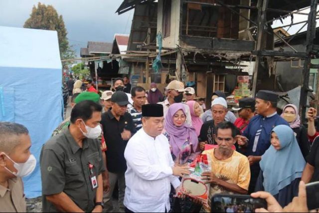 “Jadi hari ini saya hari ini resmi memberikan bantuan pemerintah daerah terhadap warga kita yang terkena musibah kebakaran ini, yang mana kebakaran ini masih belum di ketahui apa sebabnya, mungkin dari korsleting listrik atau dari kompor kita masih belum tahu,” kata Bupati.
