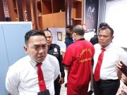 FOTO : Dirreskrimum Polda Kalteng, Kombes Pol Faisal Napitupulu didampingi Kasubdit Penmas AKBP Muryanto dan Kasubdit III Jatanras Kompol Hemat Siburian saat press release.