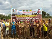 FOTO : Kadistan Bartim, Trikorianto bersama Camat Dusun Tengah, Prismayandi, ketua Komisi II DPRD Bartim H Wahyudinnor saat panen perdana jagung komposit pakan ternak,...