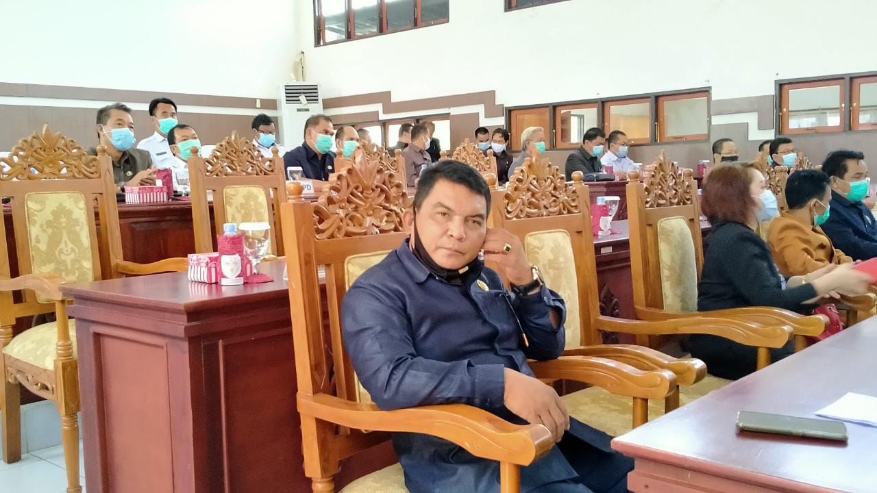 Anggota DPRD Gumas H Rahmansyah sedang mengikuti kegiatan rapat paripurna di gedung dewan, belum lama ini.