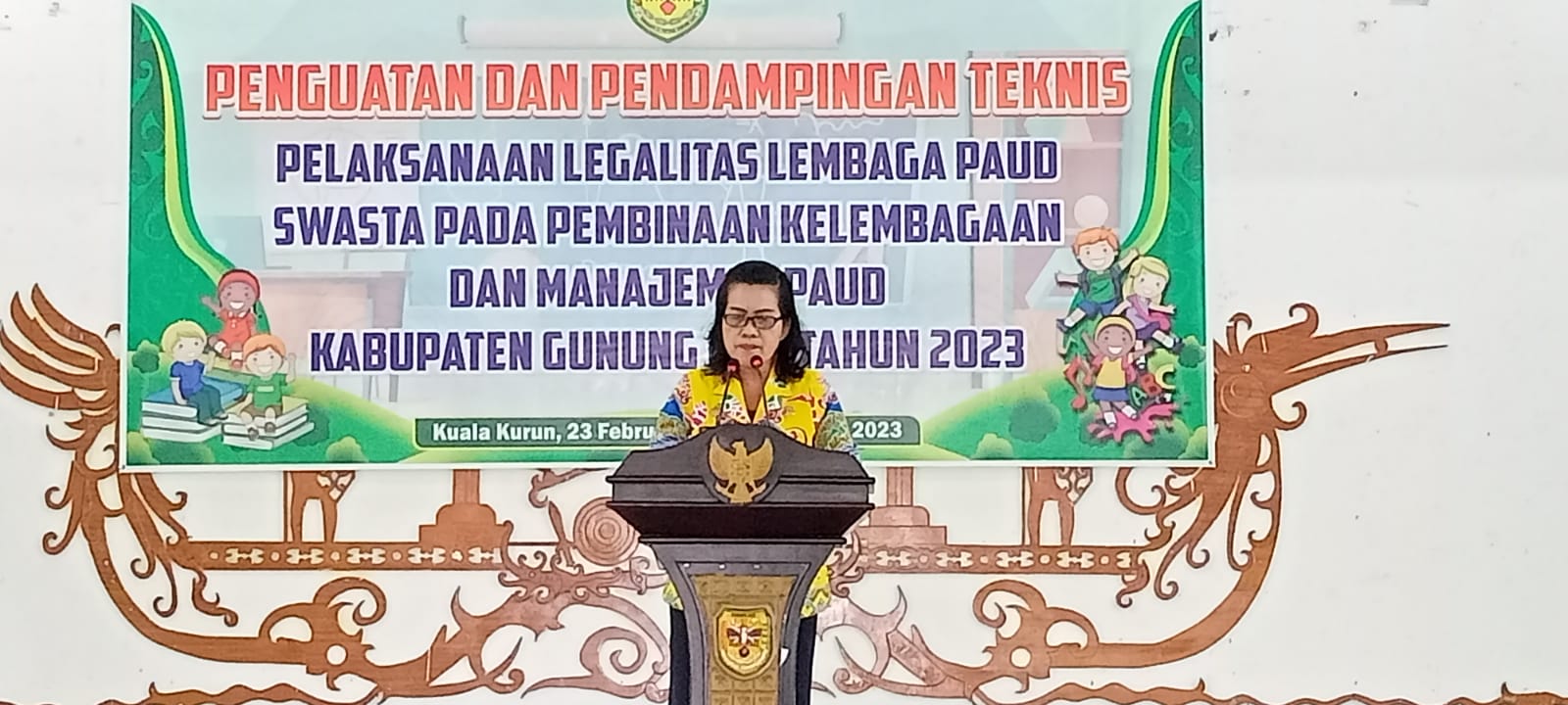 JEJAKKALTENG.COM, Kuala Kurun – Pemerintah Daerah (Pemda) Kabupaten Gunung Mas (Gumas) bersama Dinas Pendidikan dan Kepemudaan Olahraga (Disdikpora) setempat mengadakan kegiatan penguatan dan pendampingan teknis pelaksanaan legalitas lembaga Pendidikan Anak Usia Dini (PAUD) swasta pada pembinaan kelembagaan dan manajemennya. Sehingga perlu diberikan pemahaman.
