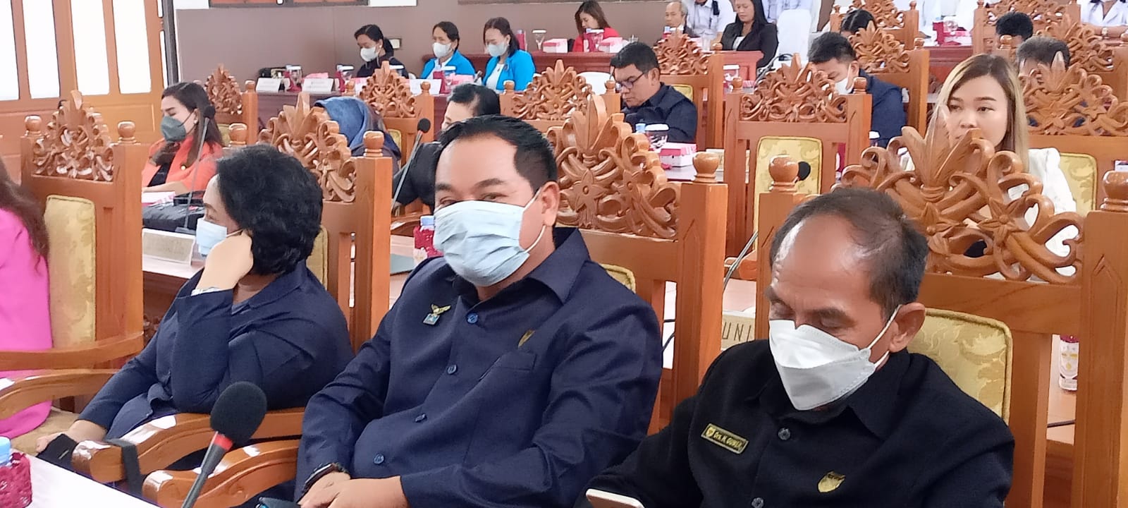 FOTO : CP/JK/RAPAT – Anggota DPRD Gumas Untung J Bangas, H Gumer, dan dewan lainya sedang ikuti rapat paripurna di gedung dewan setempat, Rabu (10/8/2022).