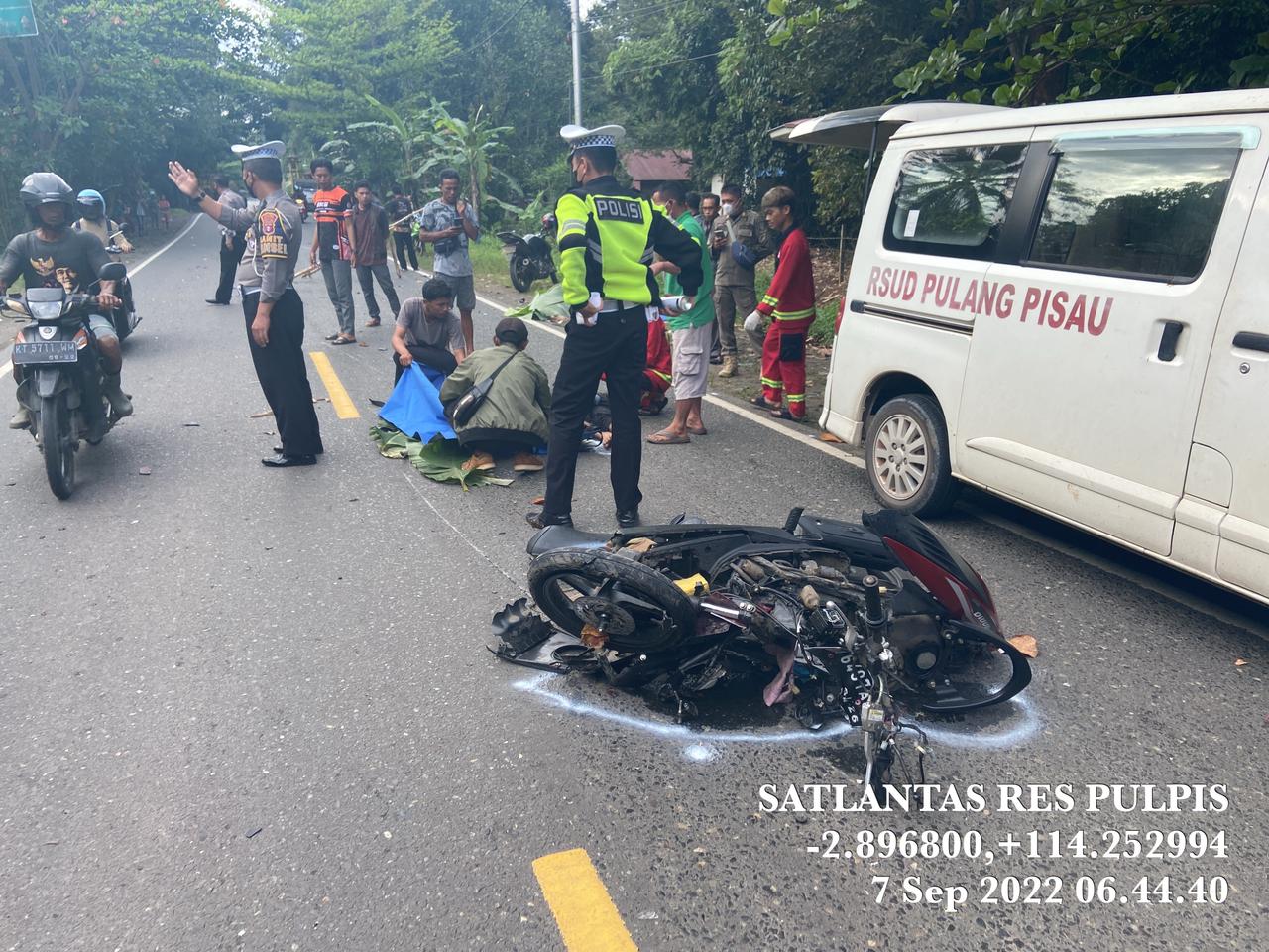 “Akibat kejadian laka lantas tersebut pengendara sepeda motor Honda Vario warna merah DA 6497 ACK yang dikemudikan oleh JAH dan penumpangnya S meninggal dunia. Sementara pengemudi mobil Toyota Hilux DA 8233 BX SM dan penumpangnya NUR mengalami Luka-luka dan kedua kendaraan mengalami kerusakan dan kerugian materil,” jelas AKP Daspin, melalui rilis yang dikirim di grup WhasApp, Rabu (7/9/2022).