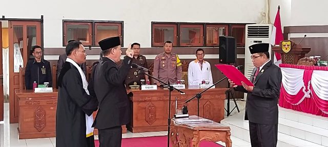 Pelantikan Mambang Singam sebagai PAW anggota DPRD Gumas, prosesi kegiatan tersebut dilakukan langsung oleh Ketua DPRD Gumas, Akerman Sahidar, didampingi Wakilnya Binartha, Neni Yuliani, dan sejumlah Anggota DPRD serta pejabat dari Pemda setempat, Senin (23/10/2023).