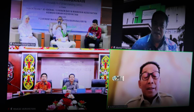 JEJAKKALTENG.COM, Puruk Cahu – Bupati Murung Raya (Mura), Heriyus, menandatangani Memorandum of Understanding (MoU) dengan Direktorat Jenderal Sumber Daya Manusia Kesehatan Kementerian Kesehatan (Kemenkes) Republik Indonesia (RI).