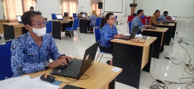 FOTO : Para peserta seleksi terbuka dan kompetitif jabatan administrator (eselon III.b) di lingkup Pemerintah Kabupaten Barito Timur serius mengikuti setiap tahapan kegiatan seleksi di Aula BKPSDM, Senin (18/7/2022).