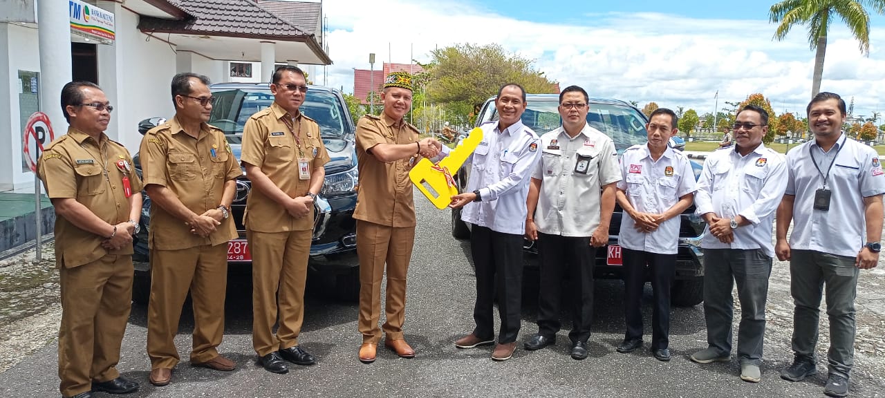 JEJAKKALTENG.COM, Kuala Kurun – Pemerintah Kabupaten (Pemkab) Gunung Mas (Gumas) bersama Badan Keuangan dan Aaset Daerah (BPKAD) setempat, menyerahkan dua unit kendraan operasional roda empat, tipe double cabin dan gardan atau kendraan dinas untuk Komisi Pemilihan Umum (KPU) setempat, tujuannya untuk menunjang kegiatan.