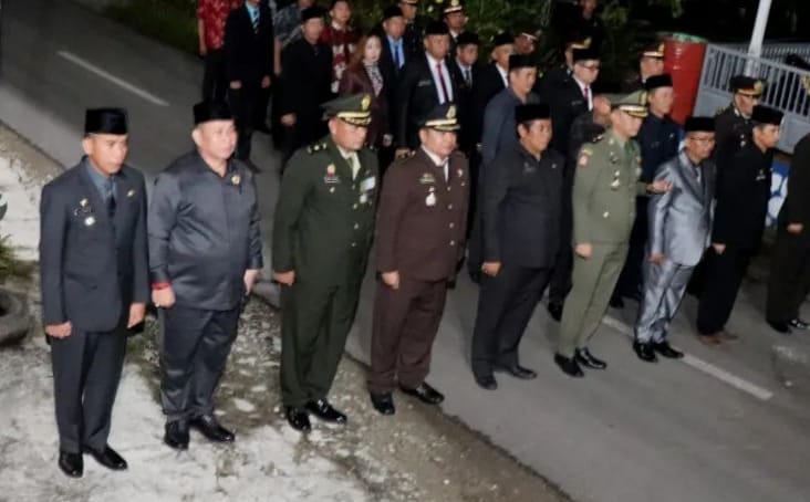 JEJAKKALTENG.COM, Puruk Cahu – Pj Bupati Murung Raya, Hermon bersama unsur Forkopimda dan tamu undangan lainnya melaksanakan apel renungan suci dalam rangka menyambut HUT ke-79 RI sekaligus memberikan penghormatan kepada arwah para Pahlawan yang telah gugur dalam perjuangan memperebutkan Kemerdekaan Indonesia.