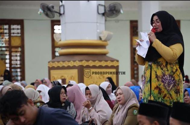 Wabup Kotim, Irawati, dalam sambutannya dalam acara peringatan Isra Mi’raj Nabi besar Muhammad SAW, di Masjid Agung Wahyu Al-Hadi, Senin (20/2/2023). FOTO : HUMAS SETDA/JK.