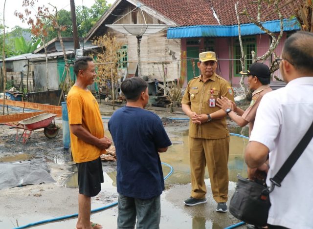 Pjs Bupati Kotim, Shalahuddin saat meninjau korban kebakaran di Kelurahan Kota Besi Hulu, Kecamatan Kota Besi, Kabupaten Kotim, pada Senin (30/9/2024).