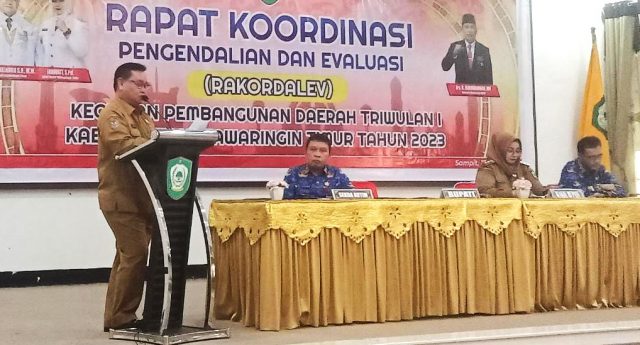 JEJAKKALTENG.COM, Sampit – Bupati Kotawaringin Timur (Kotim), H Halikinnor, didampingi Wakil Bupati Kotim, Irawati, bersama Sekretaris Daerah (Sekda) Kotim, Fajrurrahman, melangsungkan kegiatan Rapat Koordinasi Pengendalian dan Evaluasi (Rakordalev) dalam Kegiatan Pembangunan Daerah Triwulan I Kabupaten Kotawaringin Timur, di Ruang Rapat Sei Mentaya Bappelitbangda Kotim, Senin (17/4/2023).